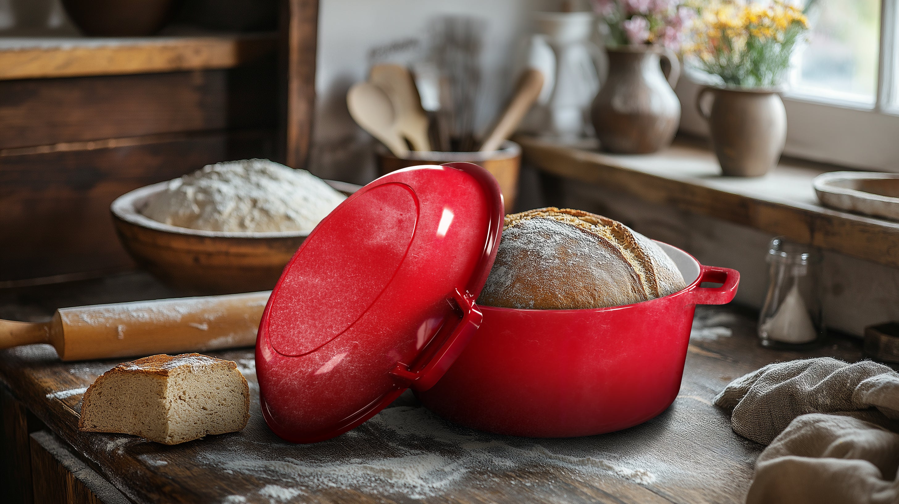 GUSSKÖNIGIN Runder Brottopf – Gusseisen-Topf zum Brotbacken mit Deckel inkl. Zubehör